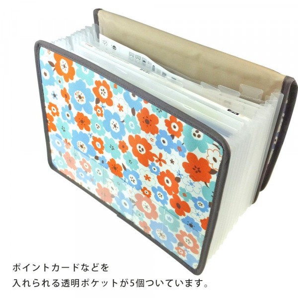 取扱説明書などの書類の整理に活用できます。12仕切り13ポケットなので月ごとに仕分けすることも可能です。外側に5つのカードポケット付き。