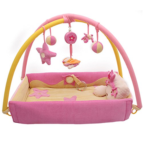 -. Feature : Multifunctional:play gym or sleeping bassinet converts to ball pit to grow from newborn to toddler / The play mat is adjustable,wall sides go up or down to create a closed play environment or tummy time mat / Large and thickly padded, Large 39 x 39 inch,super soft gym / Cute swing plush toy can play charming musical sounds to attract you baby's attention from crying / Super soft cute bear pillow can be used as baby head support or back support