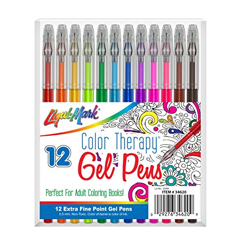 Liqui-Mark Color Therapy Extra Fine Point Gel Pens Set - 12 Pack - Multiple Colors - 0.5 mm - Non Toxic
