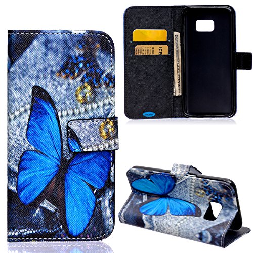 WALLET Style - Included 2 Card Slots And Money pocket - Carry around your ID, credit or debit cards, and cash without having to take your wallet with you.Built-in magnetic for secure closure.Stylish PU Leather Wallet Case for Samsung Galaxy S 7
