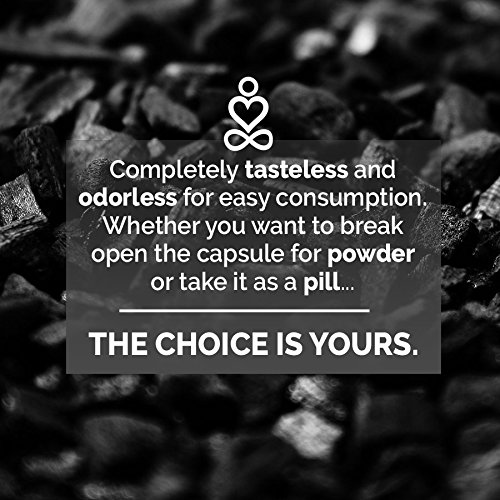 COMPLETELY TASTELESS & ODORLESS: Our Charcoal Pills are completely tasteless and odorless making it extremely easy to use. They are delivered in an easy to swallow capsule form for digestive issues, lowering cholesterol, teeth whitening and detoxifying the body.