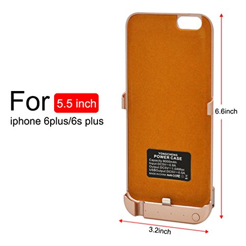 YongCheng Battery Case for iphone 6plus/6s plus,8000mAh Portable External Rechargeable Charger Wireless Backup Power Bank Case 5.5inch(Golden)