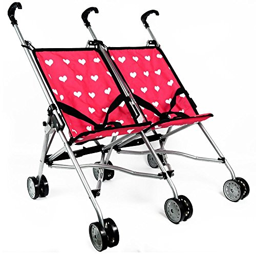 HEARTS DOLL TWIN STROLLER FOR KIDS - DOLL STROLLER FOLDS FOR STORAGE - GREAT GIFT FOR TODDLERS