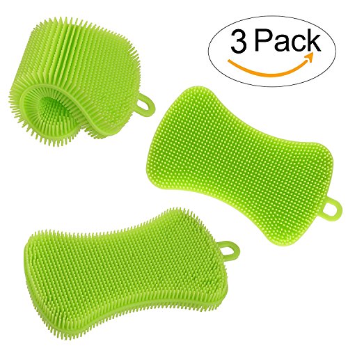 3 Piece Silicone Sponge Multipurpose Scrubber Non-Scratch Antibacterial Washing Brush for Wash Pot Pan Dish Bowl, Wash Fruit Vegetable