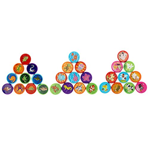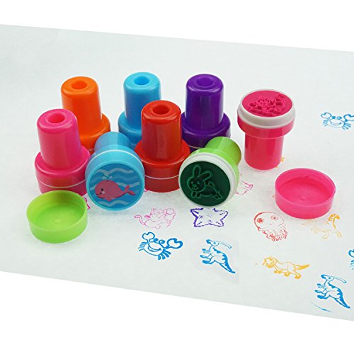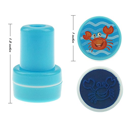 Assorted Rubber Self-inking Stamps for Kids: Small plastic rubber stamps includes 3 styles of each 10 cartoon stamps. Are respectively dinosaur, farm animal, ocean animal stamps.