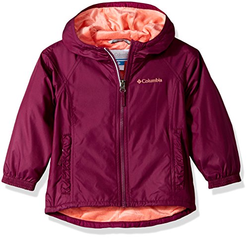 Columbia Infant and Toddler Size Chart Columbia Little Kids and Big Kids Size Chart Even when the clouds open up and the rain starts coming down, she's ready for adventure in the protective girls' Ethan Pond™ Jacket. Regular fit is eased, but not sloppy, for a comfortable range of motion. Microtex Lite™ II shell:• Lightweight, nylon taffeta shell.• Wind-resistant and water-resistant protection from the elements.• Hydroplus overlay at the hood, yoke, and shoulders for improved waterproof protection. Fleece lining:• MTR (maximum thermal retention) filament fleece increases surface area for higher warmth.• 250 g/m² fabric weight. Attached three-panel hood with brim. Full-length zip with inner draft flap. Long sleeves sport elastic cuffs. Napoleon zip pocket. Secure zip hand pockets. Reflective elements increase visibility in low-light conditions. Straight hemline. Body: 100% nylon.Lining: 100% polyester. Machine wash cold, tumble dry low. Imported. Measurements: Neck Circumference: 18 in Length: 14 1⁄4 in Chest Measurement: 12 1⁄2 in Sleeve Length: 14 in Product measurements were taken using size 2T Toddler. Please note that measurements may vary by size.Feature