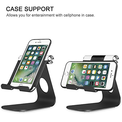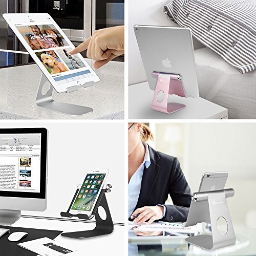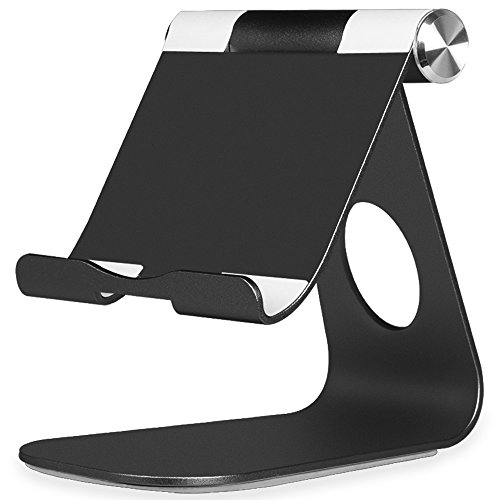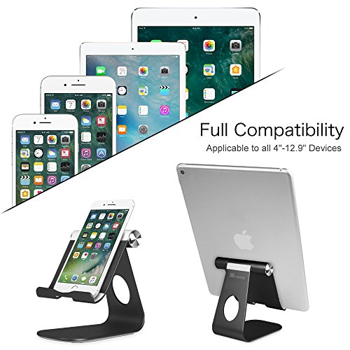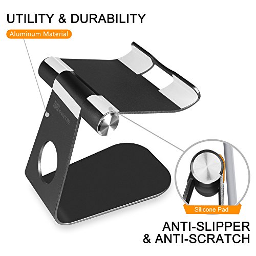 Fintie Tablet Cell Phone Stand, Universal Multi-Angle Aluminum Desktop Holder w/ Sticky Suction Base for iPad Pro 10.5/New iPad 9.7, Fire 7 2017, Samsung Galaxy Tab/S8 and More [Up to 12.9"], Black