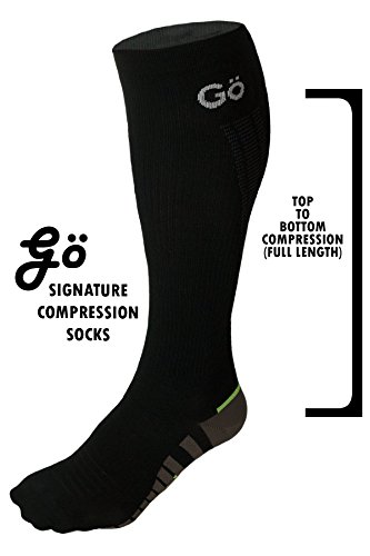 - FULL LENGTH COMPRESSION – Enjoy UNPRECEDENTED full length compression with our Gö Signature Compression Socks. Feel the difference for yourself. Unlike our competitors’ graduated or foot-only compression, our fabric provides a full length compression from calf to toe.