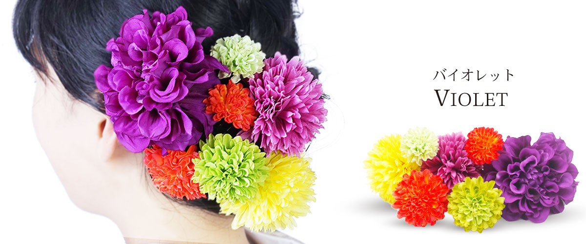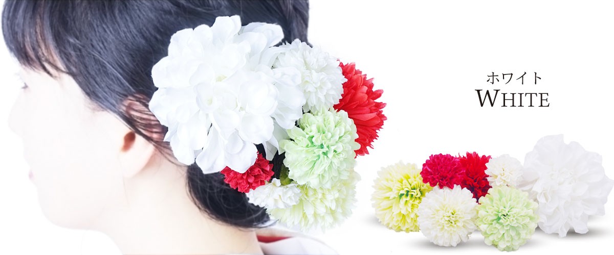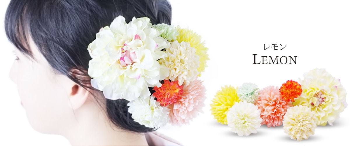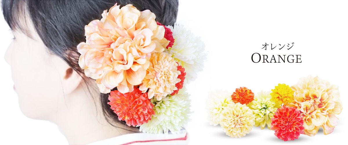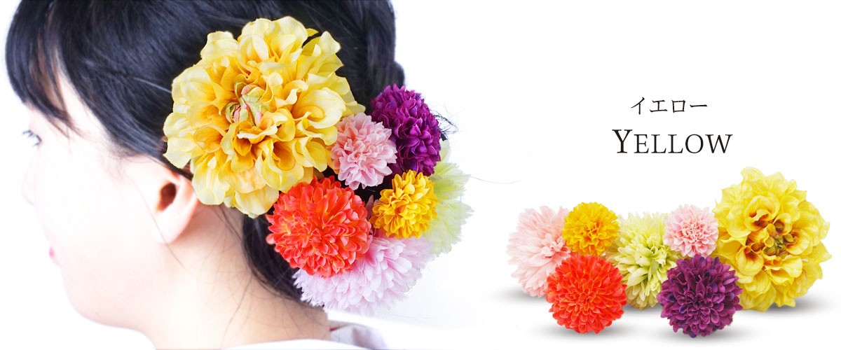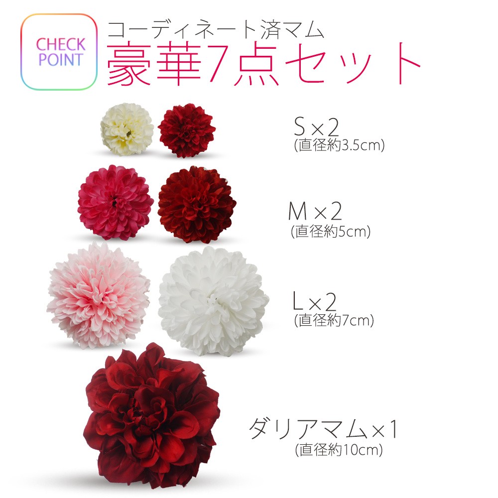 ピンポンマム(Sサイズ)-ダリアマムまでがセットになった髪飾りです。