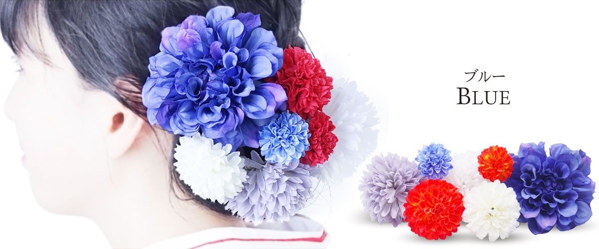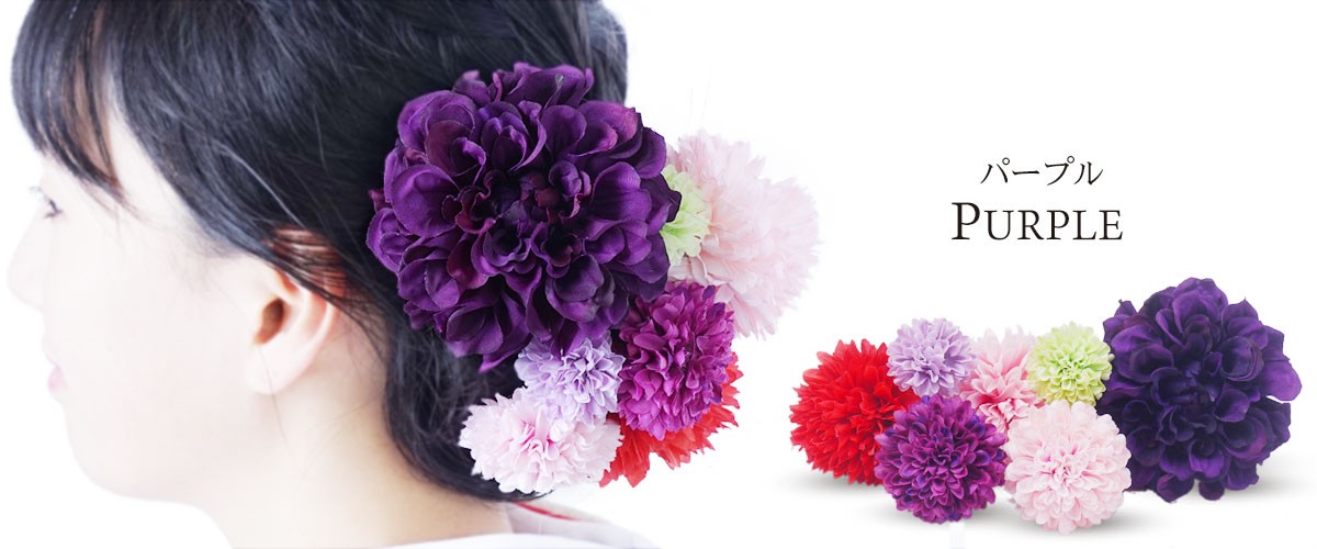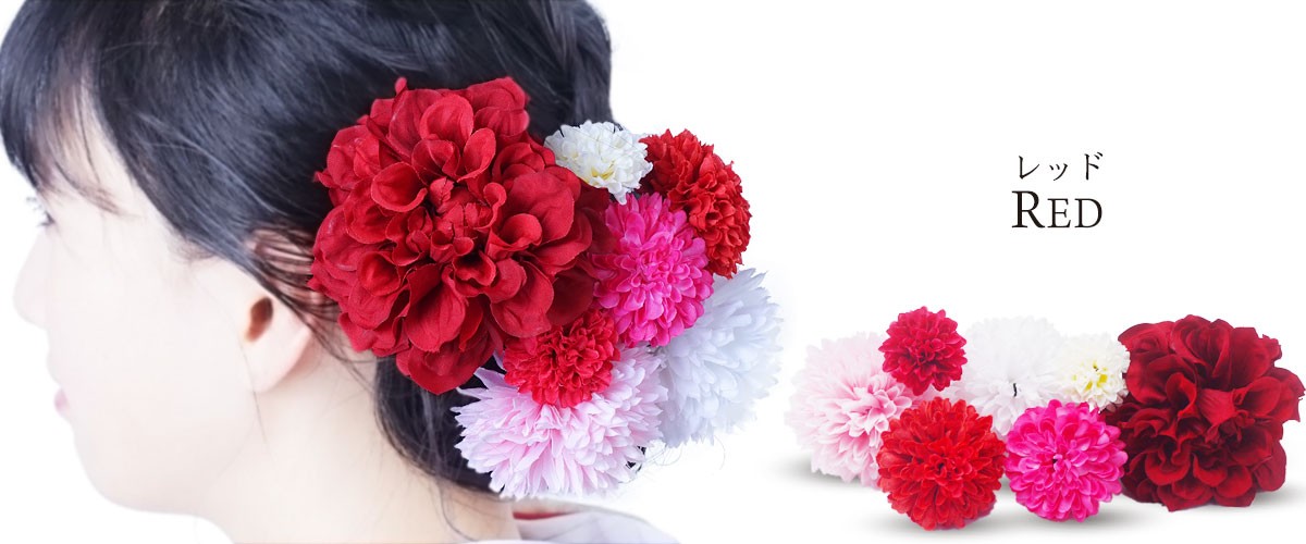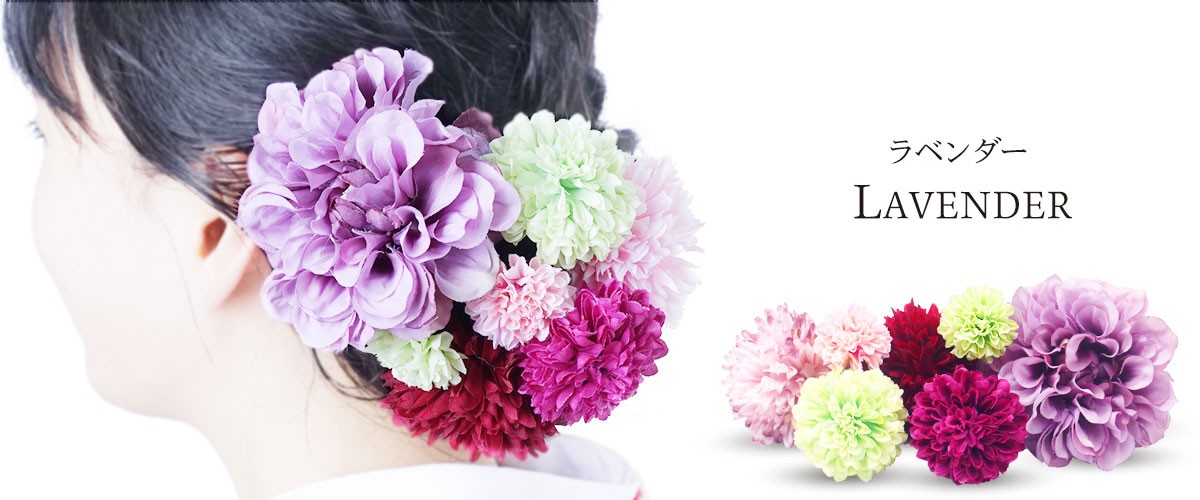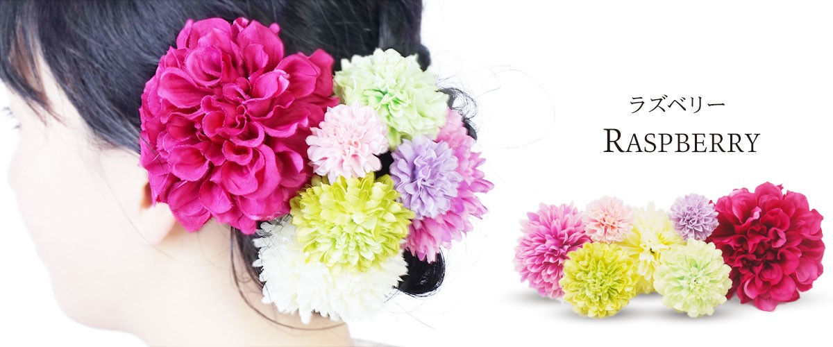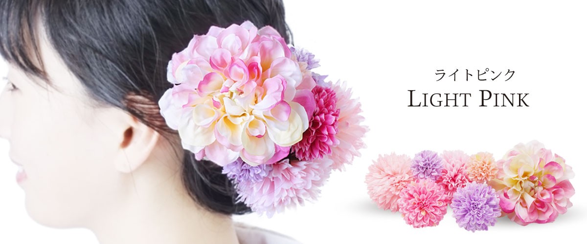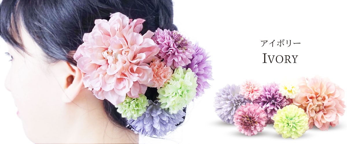 ピンポンマム(Sサイズ)-ダリアマムまでがセットになった髪飾りです。
