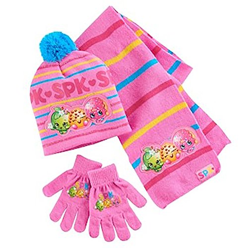 Shopkins Winter Wear Scarf, Hat, and Glove Set. Touch Screen Gloves. Featuring Apple Blossom, K...