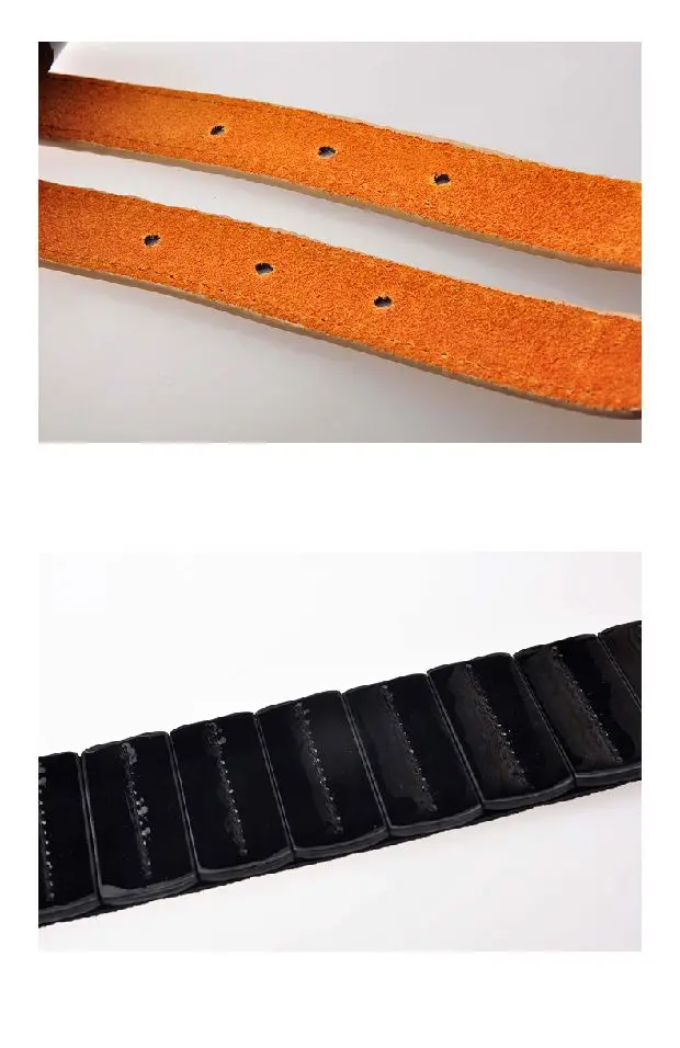 Thin Belt material:genuine leather + patent leather +hardware