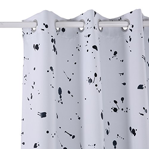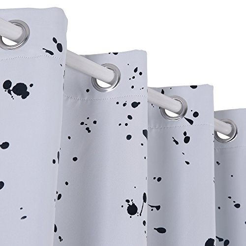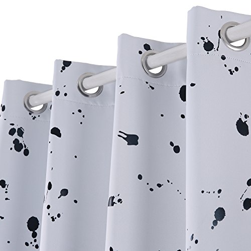 Deconovo SILVER Dots Foil Printed Blackout Curtains, brings a comfortable and lively atmosphere in your home. Neutral background color bring fabric an incredible beauty. These curatins are stylish and have a unique design. Made of 100% polyester, they are silky, soft, drapery and very pleasant to touch when compared to the other curtains. All seams are nice and straight, no loose threads. Floral patterns also have no visual defects. Overall, it makes the curtain hang nicely and gives an expensive look. They are durable, the fabric is not at all flimsy, and they are made to last for a long time! They are super easy to hang.