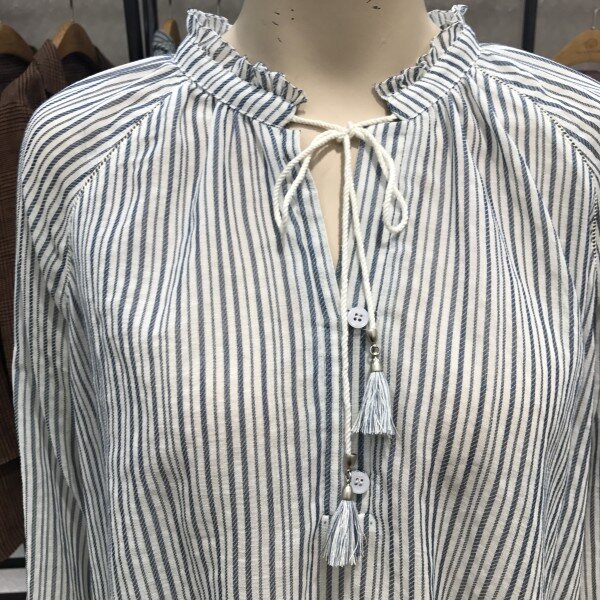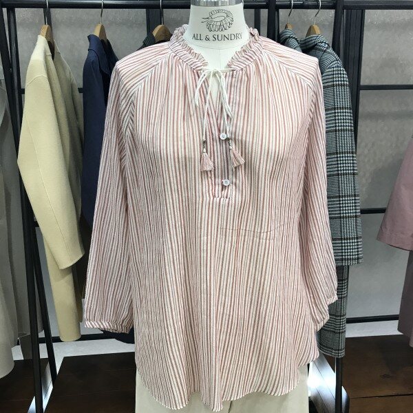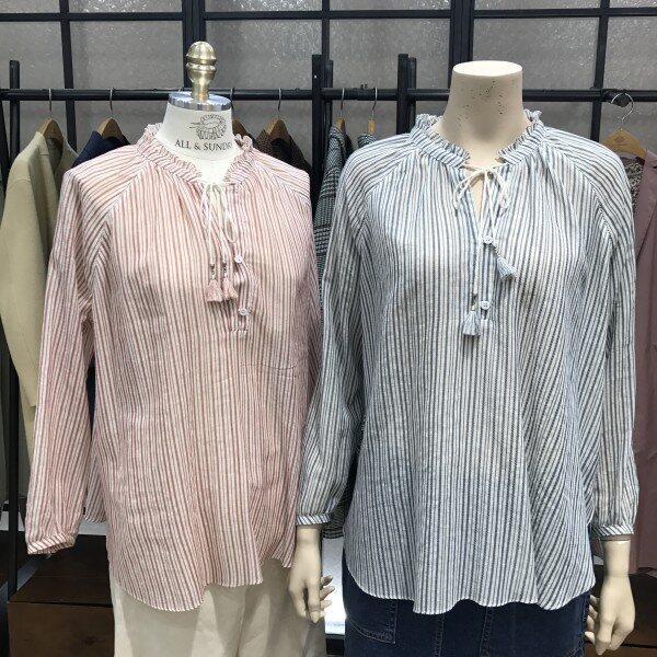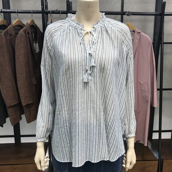 면100%로 가볍고 시원하게 입기 좋은 블라우스입니다. 아사면 소재라 통풍이 잘 되며 피부에도 잘 밀착되지 않아 여름 내내 입기 좋아요^^ 디자인 또한 앞에는 태슬이 달려있어 러블리한 분위기를 연출시켜주고, 뒷부분에는 셔링이 들어가 라인을 한층 더 예쁘게 살려준답니다. 총장길이는 55사이즈 기준으로 63.5cm입니다.