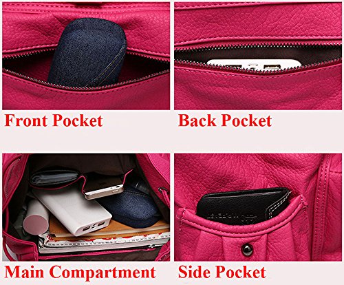 -. Feature : Material: Faux Leather / Size Approx:11.81"(L)*12.99"(H)*5.91"(H) / It can be used in different occasions:school, travel, hiking, camping or street / Adjustable shoulder straps, you'll have plenty of options for carrying your satchel handbag.: tote, shoulder bag, backpack / Roomy interior and exterior pockets design give you lots of storage options.
