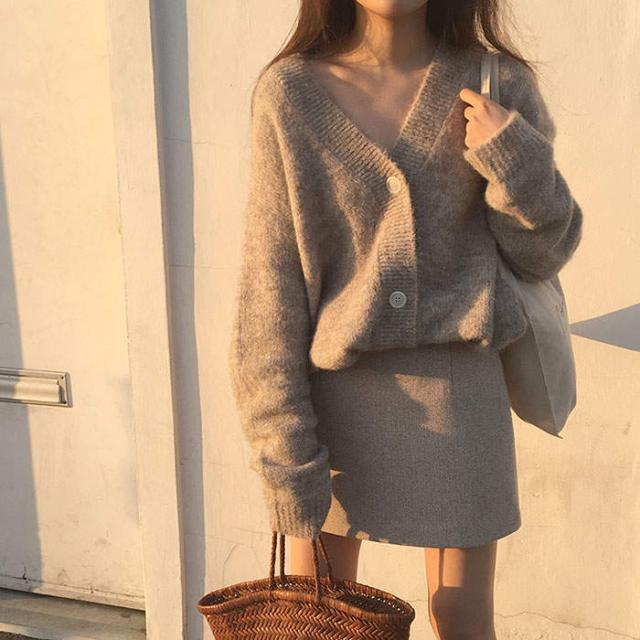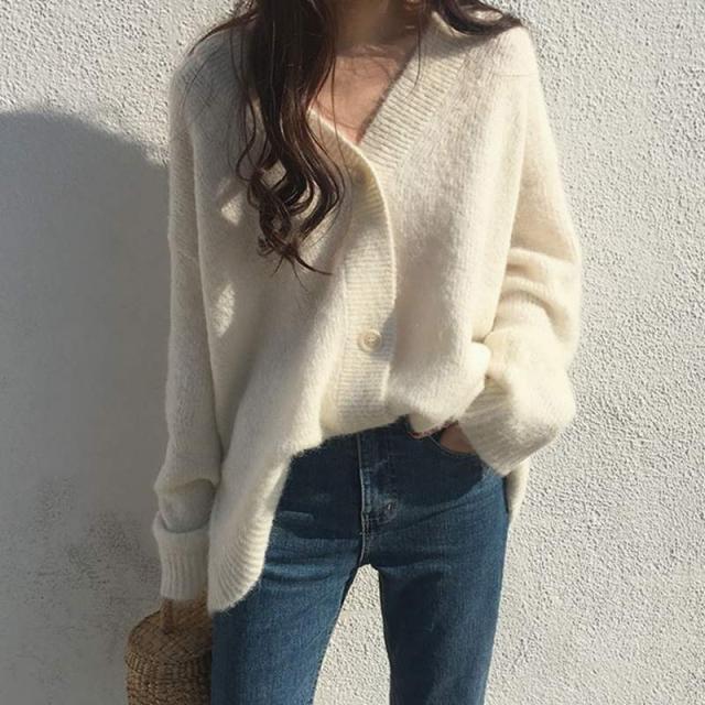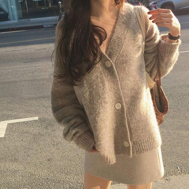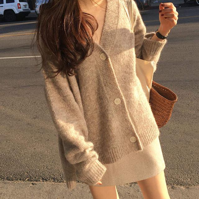 トレンド カーディガン フェミニン ふんわり Vネック スタイリッシュ 秋冬 上品 エレガント ワンサイズ XL 2XL 3XL