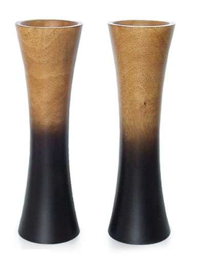 Curving gracefully outward from a slender center, cylinders of mango wood suggest erupting volcanoes. Saifon sculpts the sleek shapes and adds color that shades from clear to black.