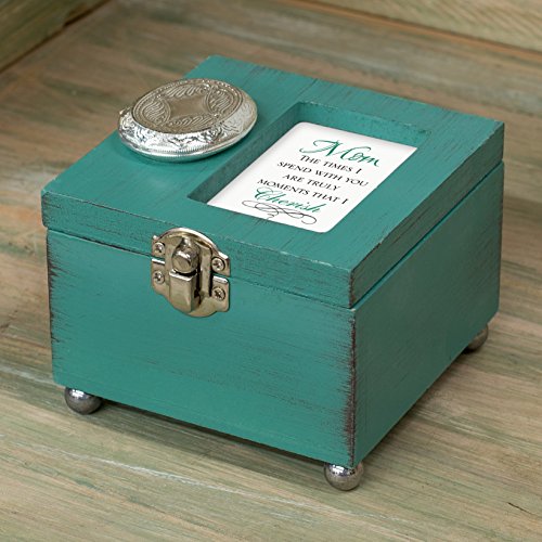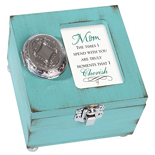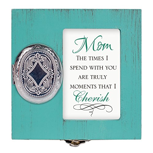 Mom Moments With You I Cherish 4.5 x 4.5 inch Distressed Coral Wood Locket Jewelry Keepsake Box