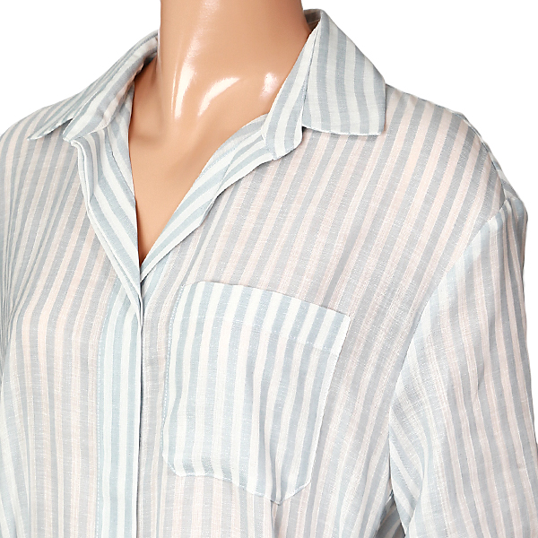 얇은 소재로 비침이 있습니다.전체 단추로 오픈클로징되는 디자인으로 비치가운이나 아우터 느낌으로 연출하시거나