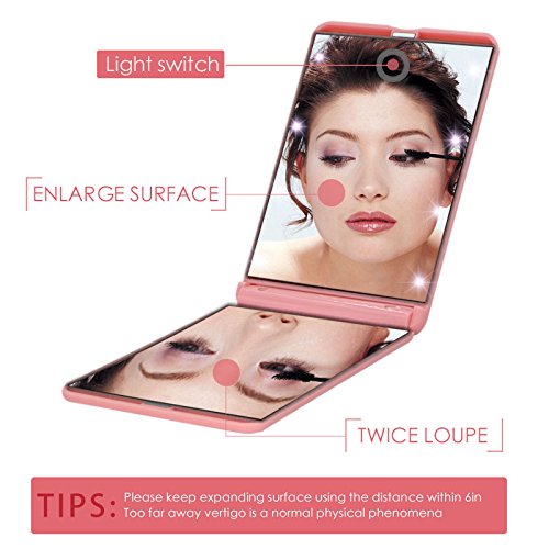 - Great Travel Mirror - Folding makeup mirror and can be great for a small gift surprise for a spouse, opening the mirror and turning the lights on it does seem fancy and adorable. Perfect for travel, office, outdoor and even at home.