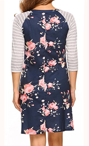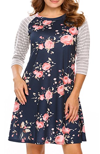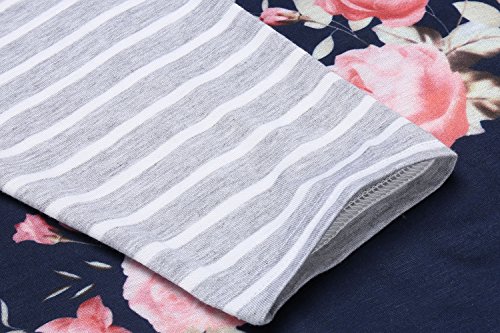 *Floral printed tunic t shirt dress with striped sleeve