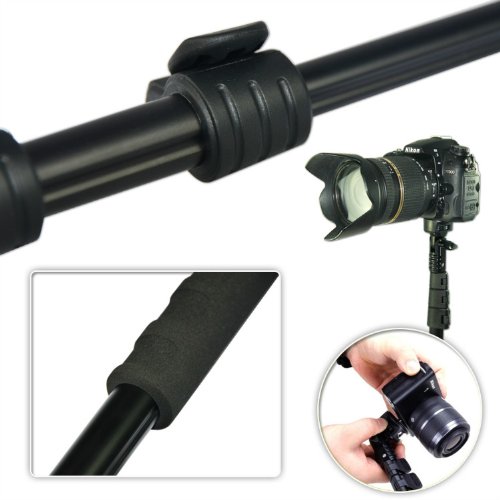 - Feature : Take self photos without asking assisstance. Just set the timer, extend the Monopod and your are ready to shoot. Capture photos or video above the crowds or in hard to reach places. / Made from high quality aerometal, extremely light weight(210g) but it can firmly hold heavy device up to 50kg(eg.professional SLR Camera/camcorder) / It collapses down to 42.5CM and extends all the way out up to 123CM. Integrated mirror design allows you to check the picture before shooting. / Adjustable ball head and thumb screw locks for multiple angle shooting with 360 degrees position. Padded Non-slip soft rubber handle with hand strap, convenient and easy to use and carry. / Stardard tripod mount allows you to attach this monopod to any camera/camorders. With the included Tripod Mount phone Adapter, you can attached it to any mobile phone up to 85mm width.