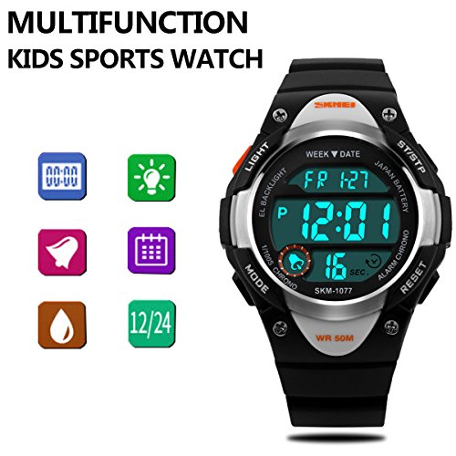 -. Title : Kids Outdoor Sports Digital Waterproof Stopwatch Alarm Date Electronic Watches Black