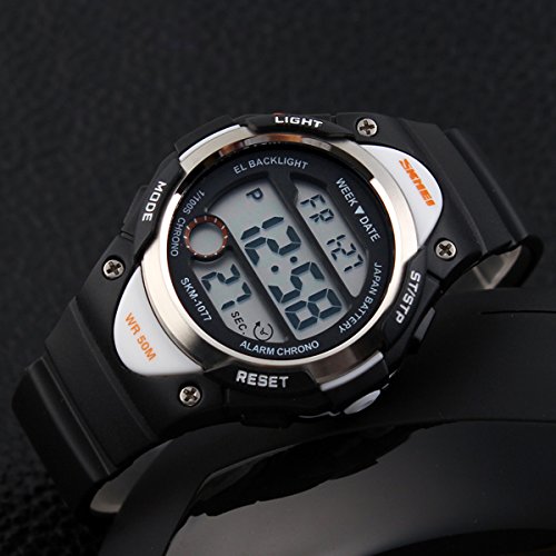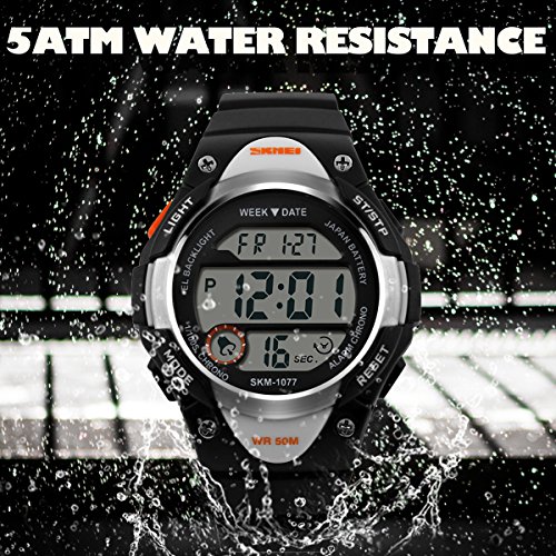-. Feature : Fashion Sports Watch , Colorful Youth , nice for outdoors exercise , very charming for all occasions , Best gift for kids / Multifunction: Stopwatch , Back Light , Calendar , Alarm , 5ATM Waterproof , Shockproof , Case Diameter 37MM(1.46") , Case Thickness 15MM(0.59") , Max Perimeter 210MM(8.27") , Min Perimeter 150MM(5.91") / Water resistant to 165 feet (5ATM/50M) , suitable for swimming and showering , but please DO NOT press any buttons in the water / Soft Silicone Strap , friendly to your skin and clothing / Professional digital movement for accurate time keeping , Protective mineral crystal protects watch from scratches