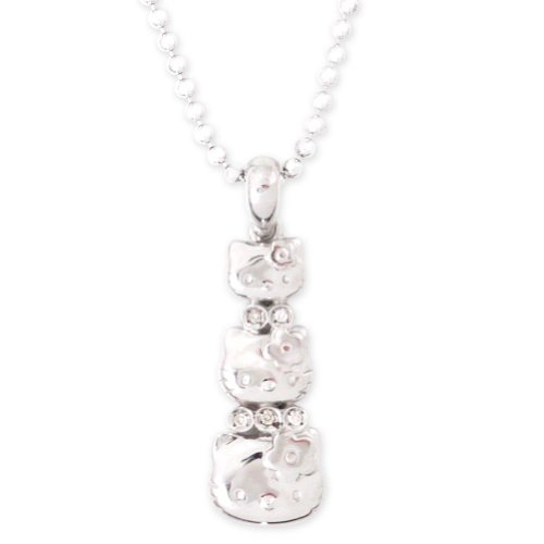 Triple the charm. This stunning pendant features three graduated sterling silver Hello Kitty faces that'll add just the right amount of sparkling appeal to any outfit. And a delicate sterling silver beaded chain with a spring ring clasp for a secure fit. It's a special treat for yourself or a thoughtful gift for that someone special!
