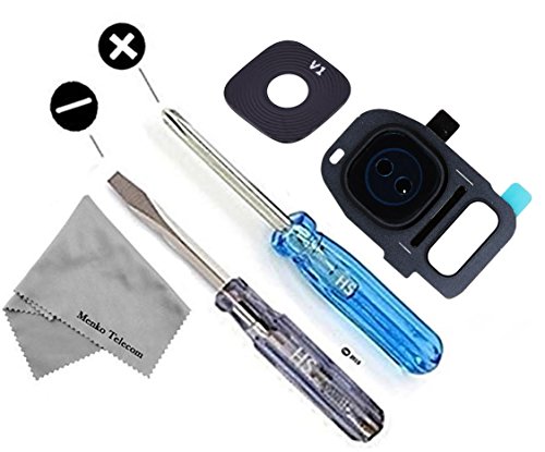 Back Rear Camera Glass Lens Replacement + Pre-installed Adhesive +TWEEZER for Samsung Galaxy S7 G930 / S7 Edge G935 Series + MMOBIEL Cloth Black