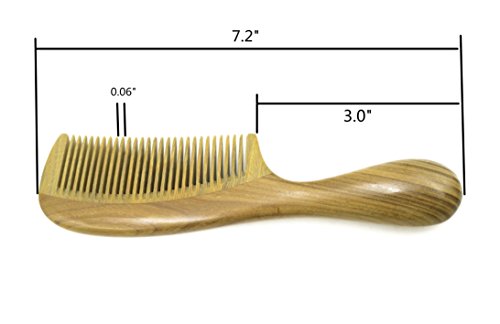 KAWIHEN Wood comb,Natural Green Sandalwood, Hair Comb with Rounded Handle - No Static,Standard tooth(0.06") .