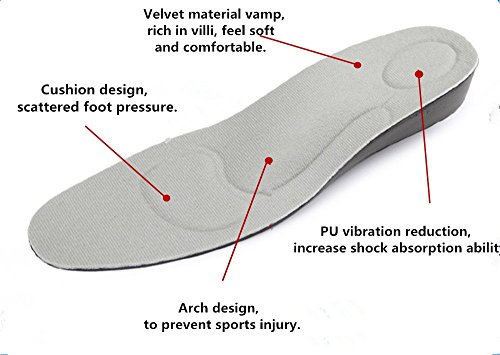 -. Binding : Misc. -. Brand : Security -. Feature : High elastic material converts impact into kinetic energy. The best insoles for Football, Basketball or any other Intense Sports / Full and long Arch support insoles improve balance and provide strong support / Active carbon fiber material provides best odor controlling / Insoles absorb perspiration to keep feet fresh and dry / Cut your own size: US women size 6-9 or men size 8-11 -. Label : Security -. Manufacturer : Security -. ProductGroup : Sports -. ProductTypeName : SPORTING_GOODS -. Publisher : Security -. Studio : Security -. Title : Security Height Increase Elevator Shoes Insoles, Sport Insoles, Arch Support Insoles