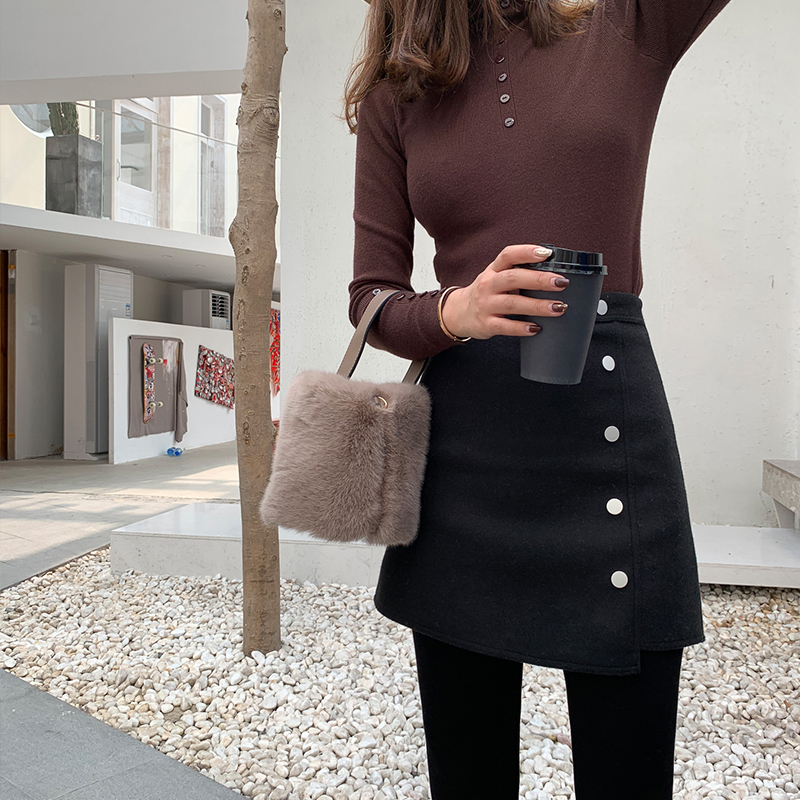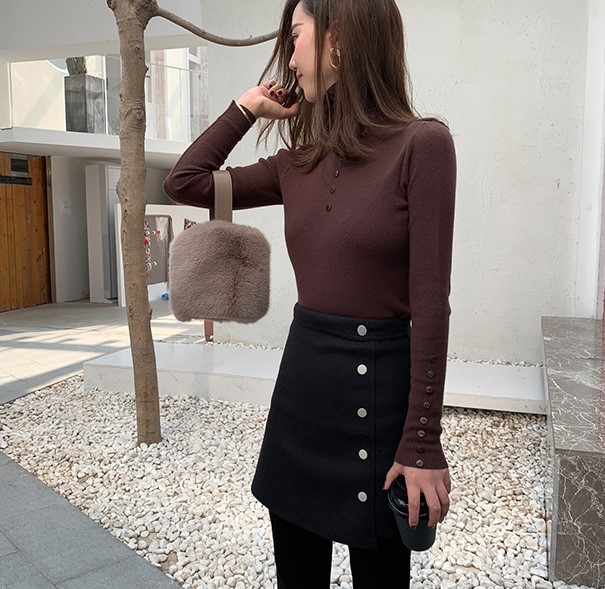規則正しく縦に並ぶボタンが可愛いミニスカートです。