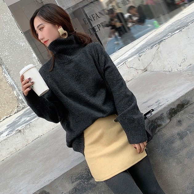 タイトスカートなので、トップスやアウターは大きめシルエットをチョイスすると今年らしい♪