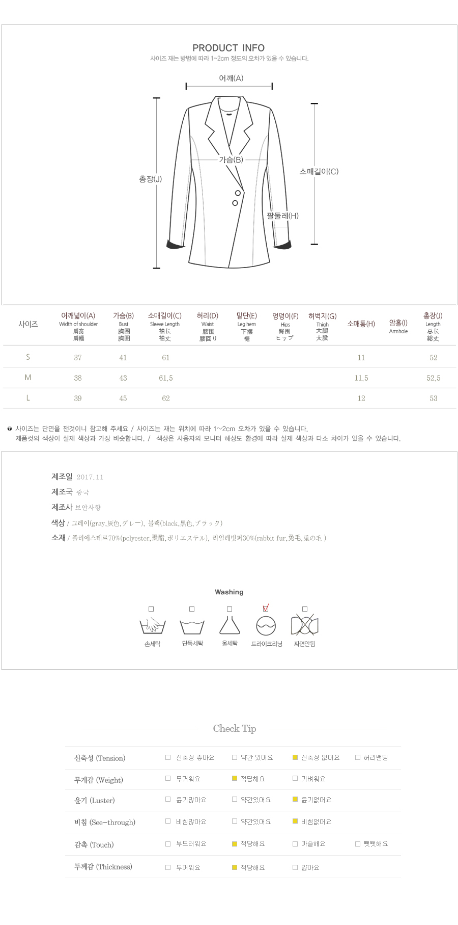 네크라인 부분 부드러운 리얼래빗퍼가 트리밍되어있어