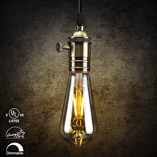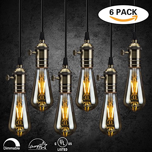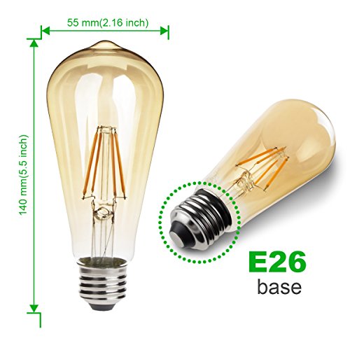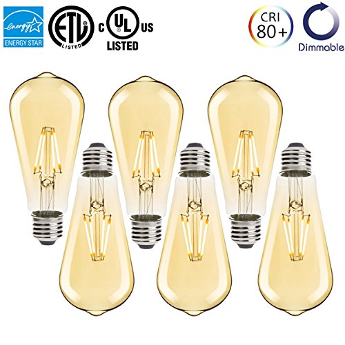 Vintage Edison LED Bulb,Dimmable 5.5W ST19 Antique LED Bulb Squirrel Cage Filament Light For Decorate Home Indoor,E26 Socket,2200K,Warm White Light,Amber Glass, Pack of 6,60W Incandescent Equivalent