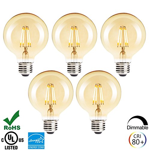 G25 LED Bulbs Dimmable Edison Bulbs,E26 Base LED Globe Light Bulbs for Decorate Home,40 Watt Incandescent Bulb Equivalent,2200K Warm White,UL Listed,Pack of 5