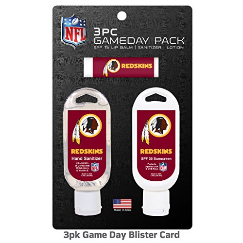 NFL Washington Redskins Game Day Pack Includes 1 Lip Balm, 1 Hand Sanitizer and 1 SPF Sunscreen (3-Piece), 8 x 5 x 1.5-Inch, White