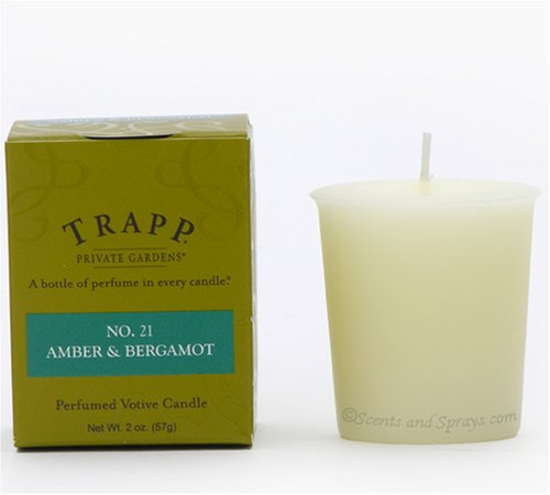 2 ounce votive candle Approximately 15-20 hour burn time Soy-paraffin blend wax Paper/cotton, zinc-free wicks Individually boxed A smooth, velvety combination of aromatic bergamot and sultry amber.