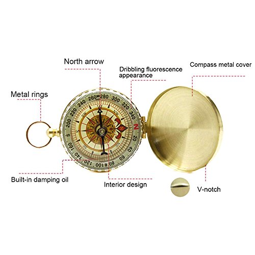 SUNFUNG Copper Clamshell Compass Waterproof Luminous Compass Camping Gear Survival Gear