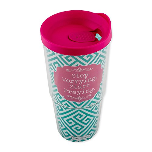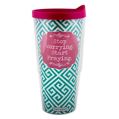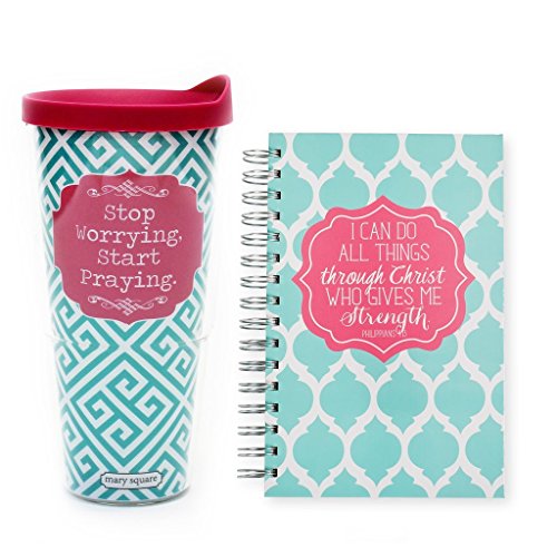Stop Worrying Christ Gives Strength Teal and Pink 24 Oz. Tumbler with Lid and Spiral Bound Notebook Set of 2