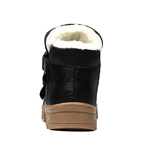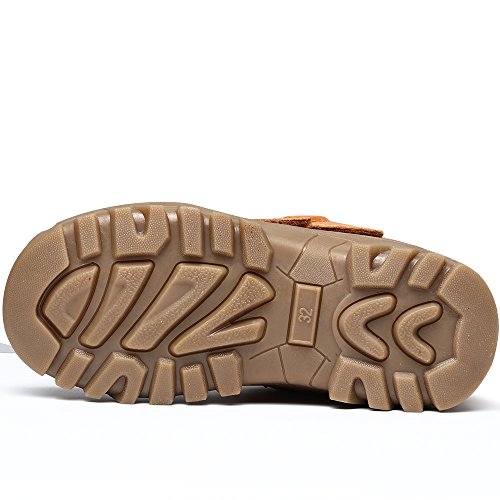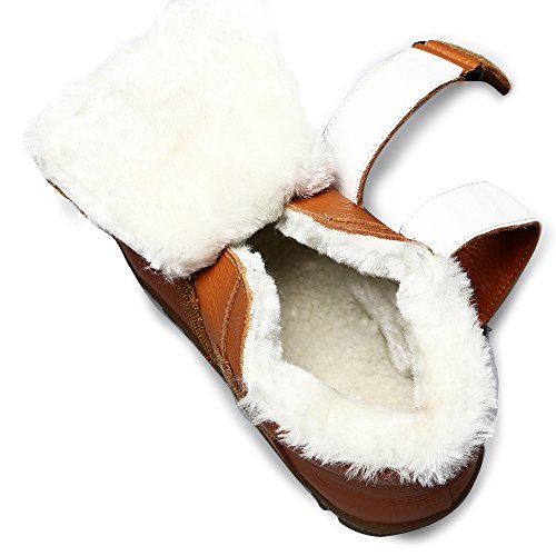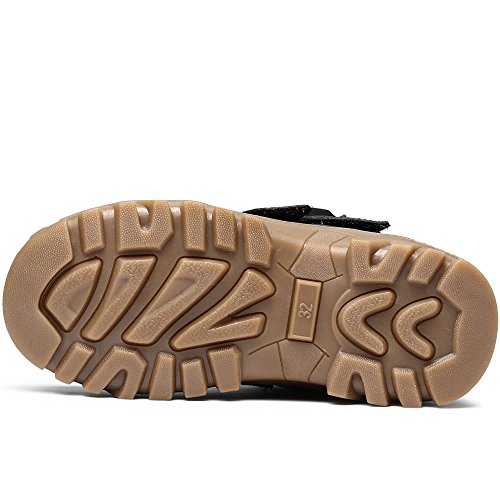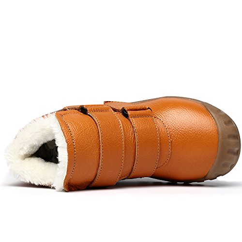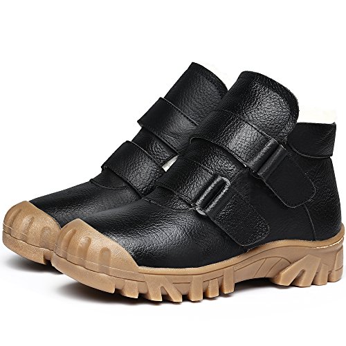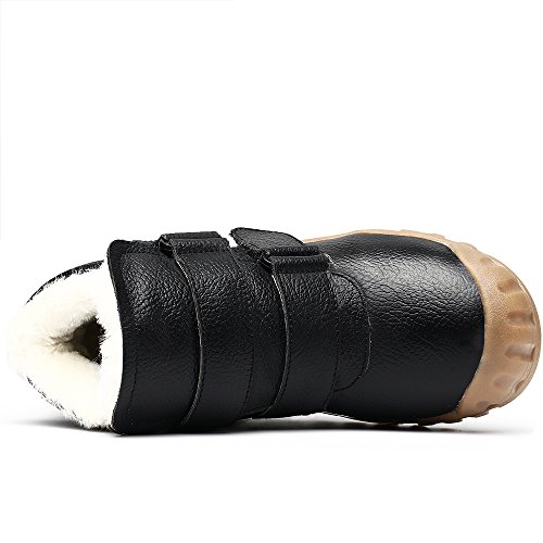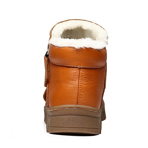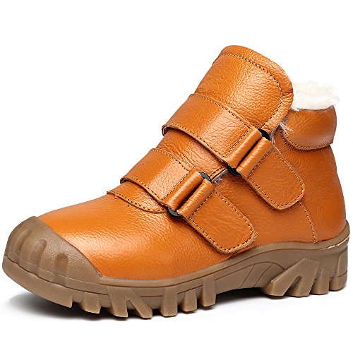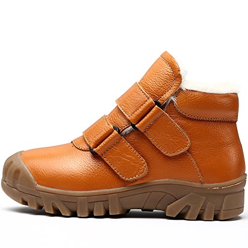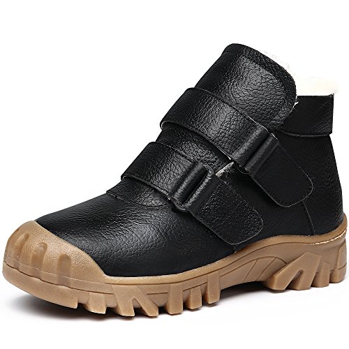 -. Feature : Easy to pull on or off and adjust an optimal fit for kids with high top velcro straps closure / Featuring waterproof leather material, anti-dirt, wearproof and protect kids' feet / Natural anti-slip rubber sole, cushioning, shock absorption and bring kids better arch support / Warm plush lining and footbed, bring kids warmer wearing experience during cold days / BEST PROTECTOR: Closed toe style prevent injury from hard sharp foreign matter.
