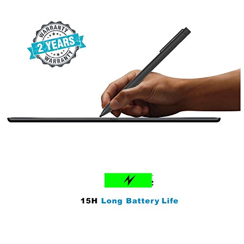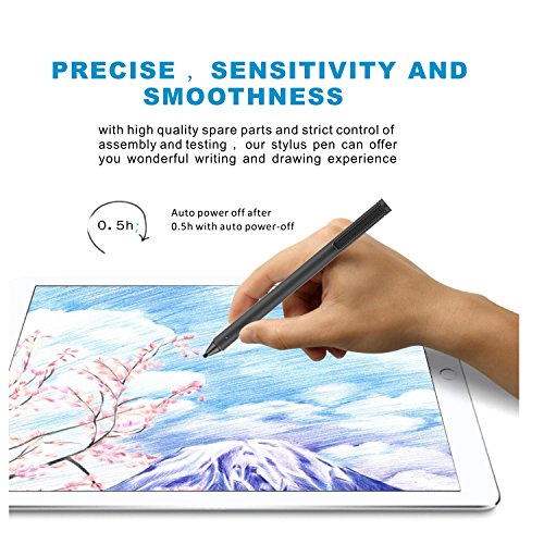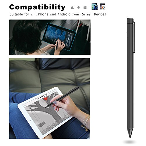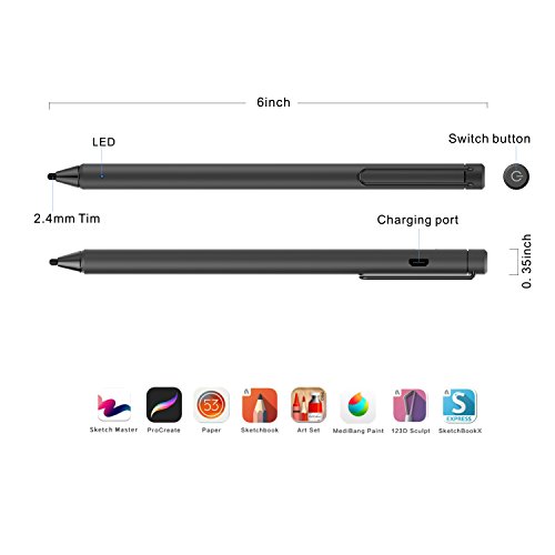 -. Feature : QUIET and NO SCRATCHES : Since the fiber material tip is flexible, your writing will be very quiet and won't leave scratches on the surface like the metal nib of other pens. / PRECISE SENSITIVITY and SMOOTHNESS : With a 2.4mm highly sensitive fiber material, and super fine tip , the tablet pen ensures that your actions feel like actual pen and paper writing. Reduce lag time, inaccurate, and inconsistent handwriting. suitable for both handwriting and drawing . / UNIVERSALLY COMPATIBILITY: Suitable for all iPhone and Android Touch Screen Devices and Existing IPads. (such as iPhone 7,7+,6/6S,6 plus,6S,5/5S , Google, LG, HTC, BlackBerry, Motorola, Samsung Galaxy Note 10.1, Galaxy Note pro 12.2,Galaxy Note 5/4/3 , IPAD , IPAD AIR , IPAD AIR2 , MINI 1/2/3/4 , Samsung tablet etc.) / 15 HOUR BATTERY LIFE: Built-in 160mAh lithium battery results in continuous writing for more than 15 hours. Default energy consumption is set to 0.5h with auto power-off, keeping it far from energy wasting. USB charging takes only 2 hours to full capacity, making it easy to use . / WORRY-FREE SHOPPING: with high quality spare parts and strict control of assembly and testing, we are confident of the quality of our stylus pen, therefore, we offer 30 days free return policy and a generous 24-month warranty!