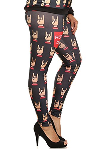 -. Feature : Size M Measurements - Waist: 28 - 29.5" (71 - 75 cm) Hips: 37 - 39.5" (94 - 100 cm) / Size L Measurements - Waist: 30 - 31.5" (76 - 80 cm) Hips: 40 - 41.5" (102 - 105 cm) / Size XL Measurements - Waist: 32 - 33.5" (81 - 85 cm) Hips: 42 - 43.5" (107 - 110 cm) / Length: 39" (99 cm) . 95% Polyester 5% Spandex. MADE IN USA. High waist style stretchy leggings. / "Rock out" hand signal P.R.Inted all over. The words "Rock Out" are also P.R.Inted on back and front. Inseam: 27" (69 cm), Rise: 14" (36 cm).