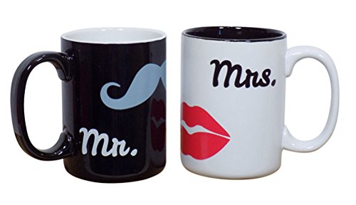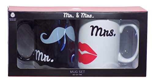 -. Brand : Wild Eye Designs -. Color : Black/White -. EAN : 0665613226980 -. Feature : A creative and fun Mr. and Mrs. Design with mustache and lips / Mugs come packaged in an equally nice gift box / A great gift for engagements, weddings, anniversaries and more / Each mug holds 16 ounces of beverage / Hand wash in warm soapy water to retain the best luster -. Label : Wild Eye Design -. Manufacturer : Wild Eye Design -. PackageQuantity : 2 -. ProductGroup : Kitchen -. ProductTypeName : KITCHEN -. Publisher : Wild Eye Design -. Size : 16 Ounce -. Studio : Wild Eye Design -. Title : Mr. and Mrs Mustache and Lips Mug Set, 16 Ounces -. UPC : 665613226980