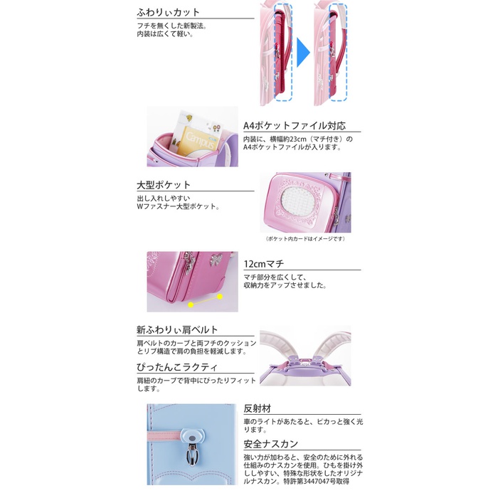 원본상품명: ふわりぃ ランドセル ふわりぃ プレミアムコンパクト 女の子用ランドセル 2018年版