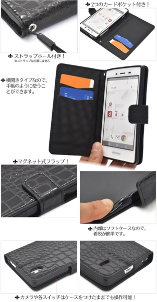高級感溢れるクロコダイルレザーデザインのMONO MO-01J用スタンドケースポーチ。