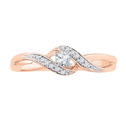 -. Title : 10 KT Pink Gold Round Diamond Fashion Ring (0.12 Cttw)