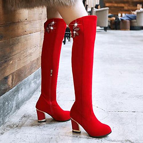Binding : Apparel Product Description The pair of right shoes can make all the difference. The boots season comes. A pair of long boots is a must-have for a lady who want to be impressed in the crowed. If you're trying to get boots that will send a message with your every step, there's no finer footwear to add glamour close to you than these tall boots from Mofri. These boots don't whisper; they scream with their distinctive and trendy design. This pair of boots make you stand out in any crowd and are sure to heat things up no matter what you wear with them. The block heels raise your height and giving the shoes a chunky shape that is reflection of the latest trends. These shoes from Mofri is made from top quality vegan synthetic leather. Leave those boring basic boots behind. Make this pair boots as your fashion secret weapon and you'll be able to have some sexy appeal which will be the soul of your everyday ensembles. Order a pair in your favorite color! Can't decide? Why not get more? You'll still pay less than the price you would for a single designer pair elsewhere. We will make you always be on the cutting edge of women' s fashion. Mofri is a legal trademark which has registered in United Stated Patent Trademark Office. All right reserved. 0