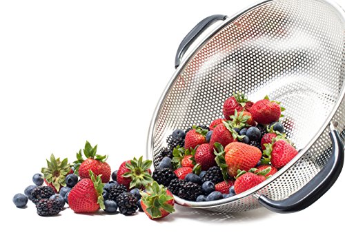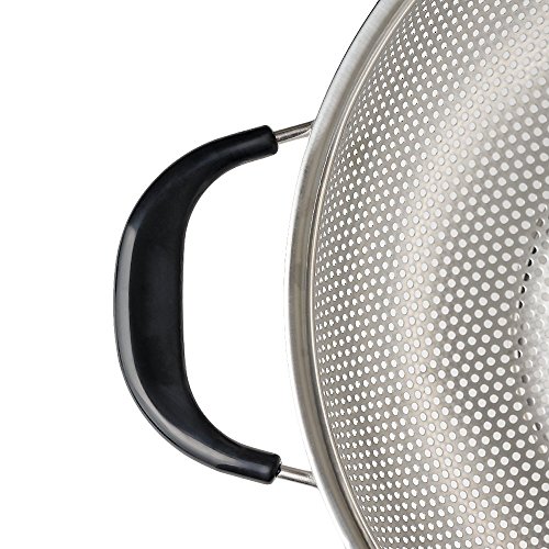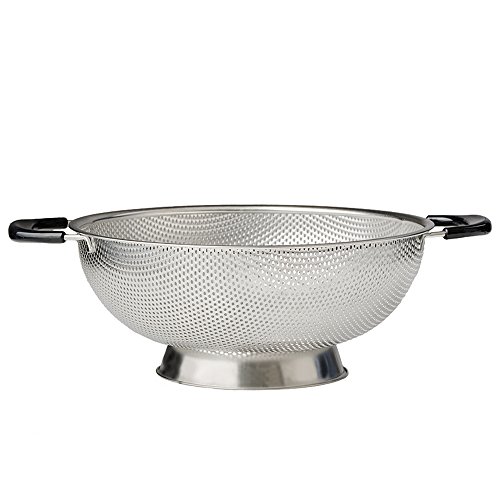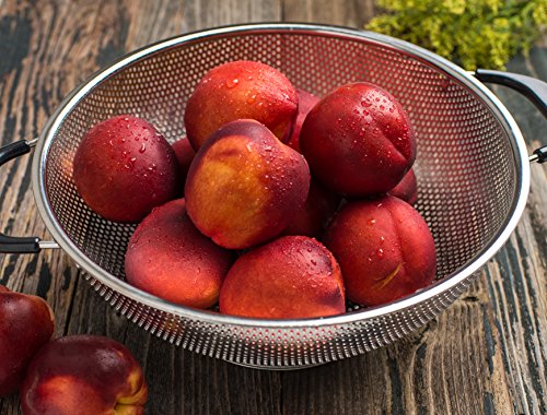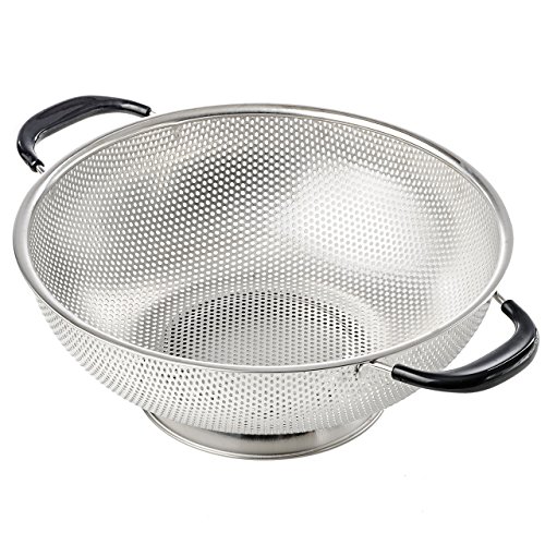 Make delicious pasta, macaroni, noodles and orzo dishes as much frequently as you like for your entire family with the help of the 5-quart KUKPO strainer. The large kitchen utensil also allows you to wash all the vegetables and fruits you need for a week at once. Use mixing bowls that holds the colander perfectly for faster straining and storage. Since food particles do not clog the holes, you can clean the colander swiftly using some mild detergent, if needed, and is dishwasher safe as well. 0